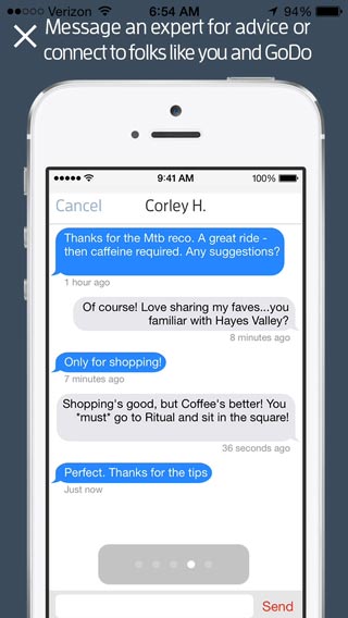 - Match: We let you match with other GoDoers based on interest, level, and distance. You decide what’s local. 100 miles in California or 5 miles in Vermont.